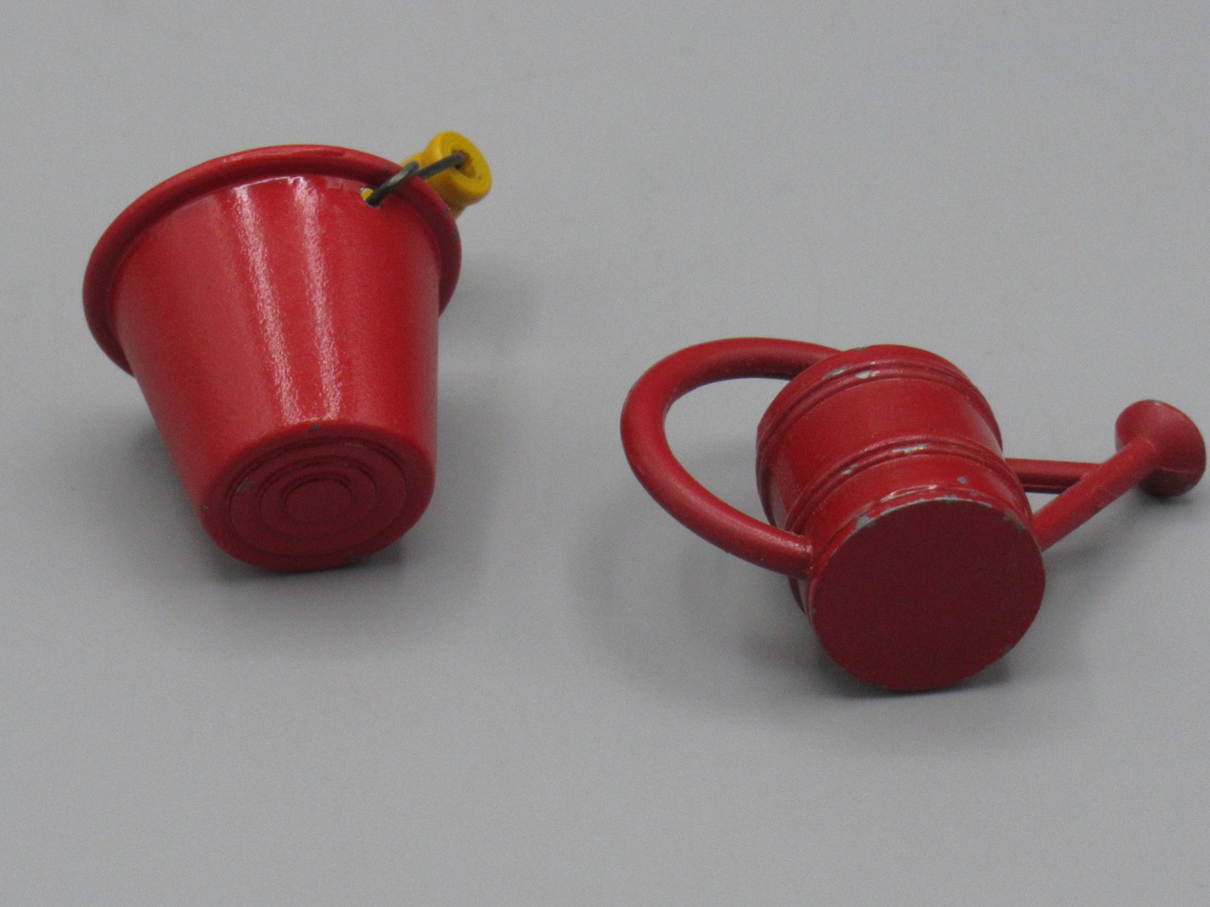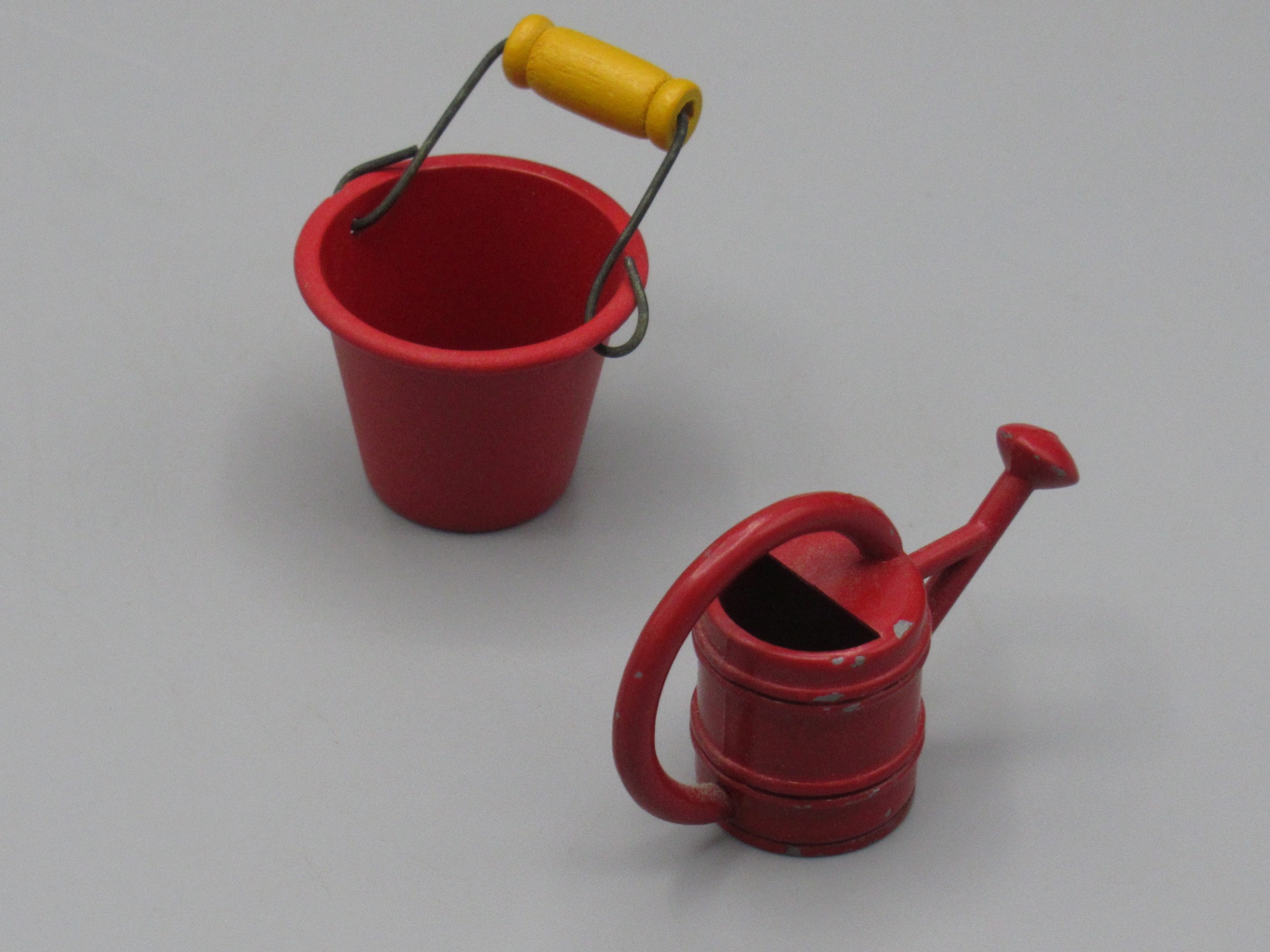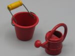 Arrosoir et seau en métal rouge – Maison de poupée