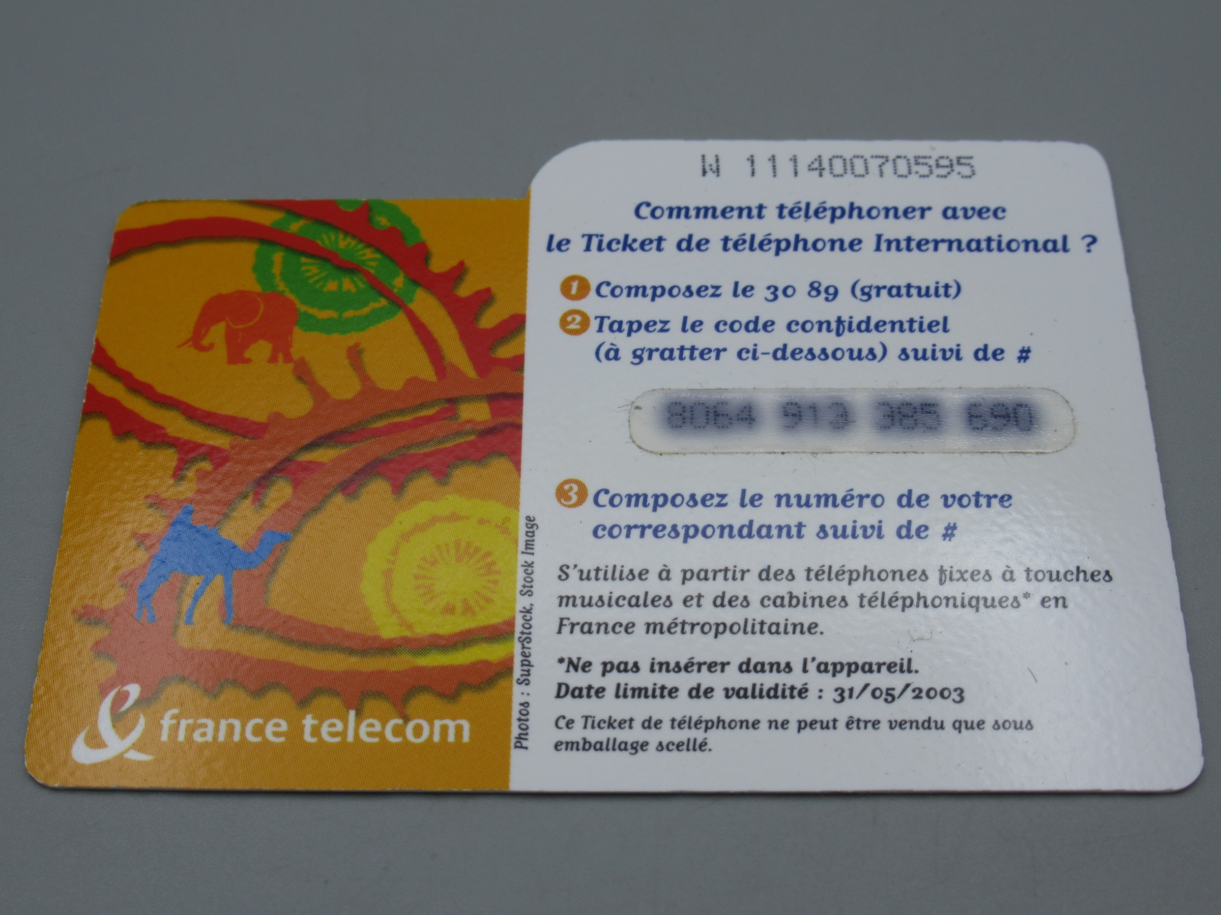 Le ticket de téléphone International 100 F – France Telecom 2003