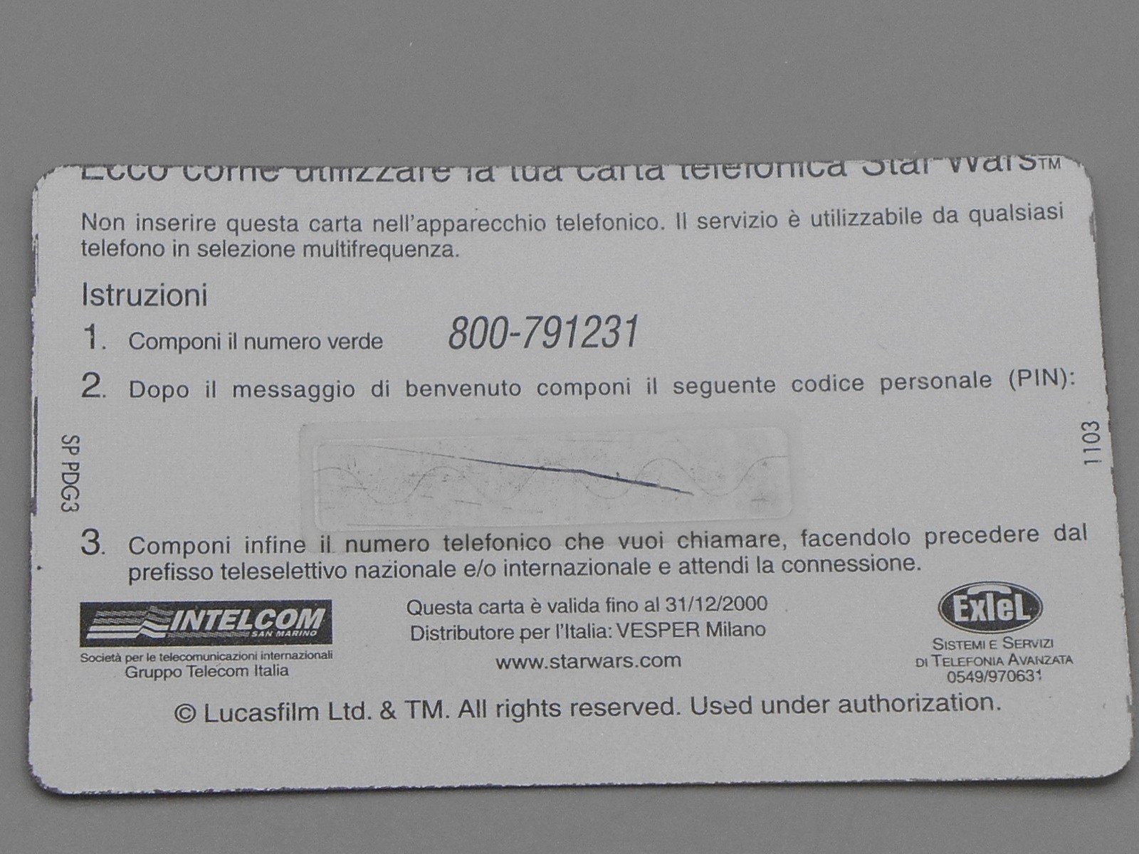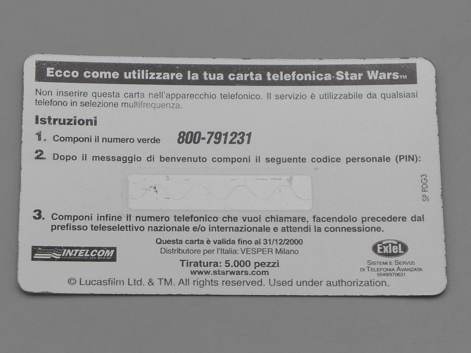 Télécarte Star Wars Droide 3B3 – Intelcom Italia