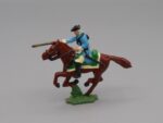 Cavalier bleu chargeant sur cheval marron – Ancien régime du 18e